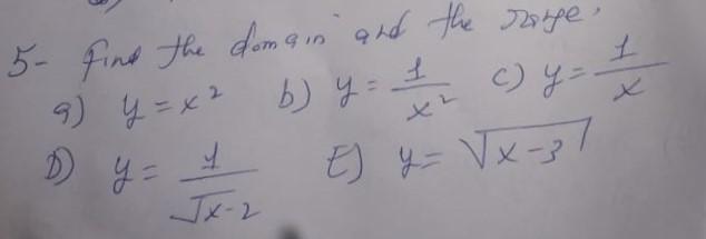 1 : C 5- find the domain and the range 9) y=x2 Б) 4- E) - Vx-27
